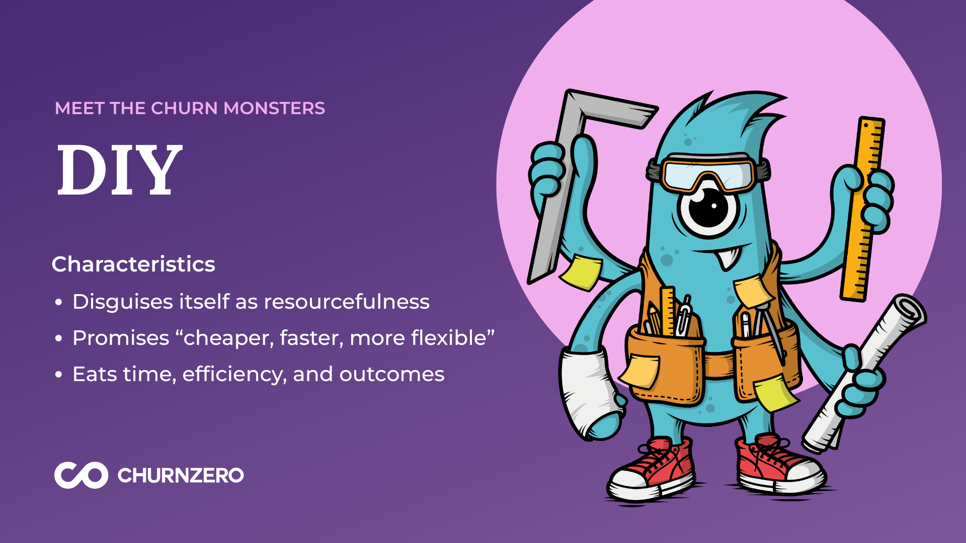 Quick Summary: Churn in 2025 looks different. The biggest risks are often subtle, strategic, and often outside your product’s control. Meet “DIY”, ChurnZero’s newest Churn Monster, and get re-acquainted with five others who are especially relevant this year.